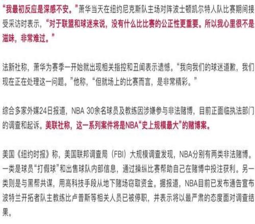 NBA爆出“史上最大规模”赌博案,总裁首次发声:深感不安,向球迷道歉